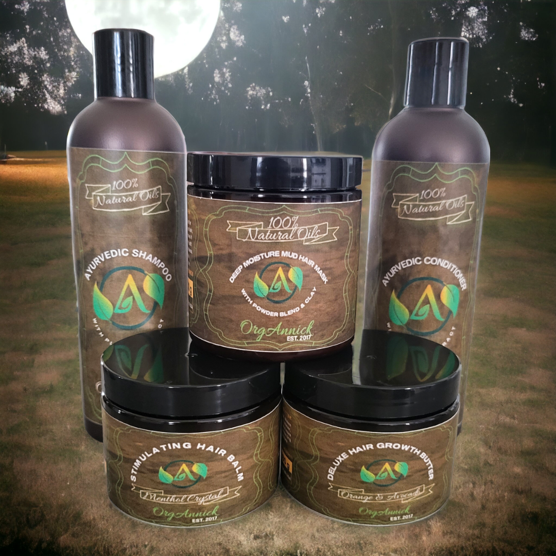 The Ayurvedic Hair Care Set for Intense Hair Growth with Mud Mask is a game-changer for those seeking organic and herbal hair treatment. The set includes a muf mask, herbal shampoo, purifying conditioner, stimulating hair balm, and deluxe butter cream. All made with plant-based infused-oil from Africa, this set is free from silicone and parabens making it perfect for anti-dandruff and anti-alopecia treatment. The mud mask promotes intense hair growth leaving your locks healthy and nourished.