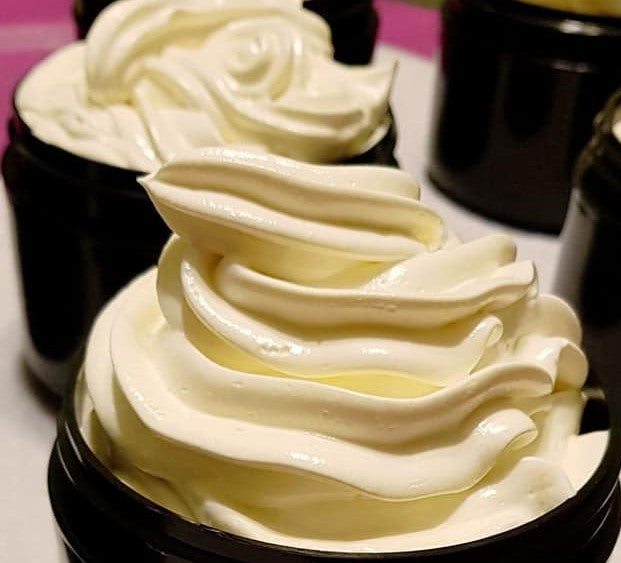 Shea butter, Avocado butter, Macadamia butter, Soy butter, Aloe Vera Butter, Olive Butter, Jojoba Butter, Argan Butter, rice bran butter, Almond butter, coconut oil, Castor oil, Sunflower Oil, Rosemary Mint Essential Oil, Eucalyptus Essential Oil, Goat Milk.